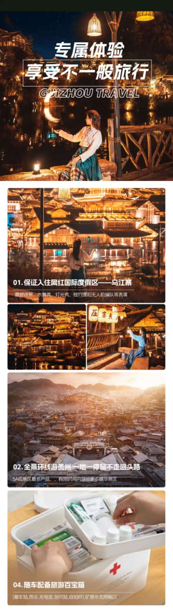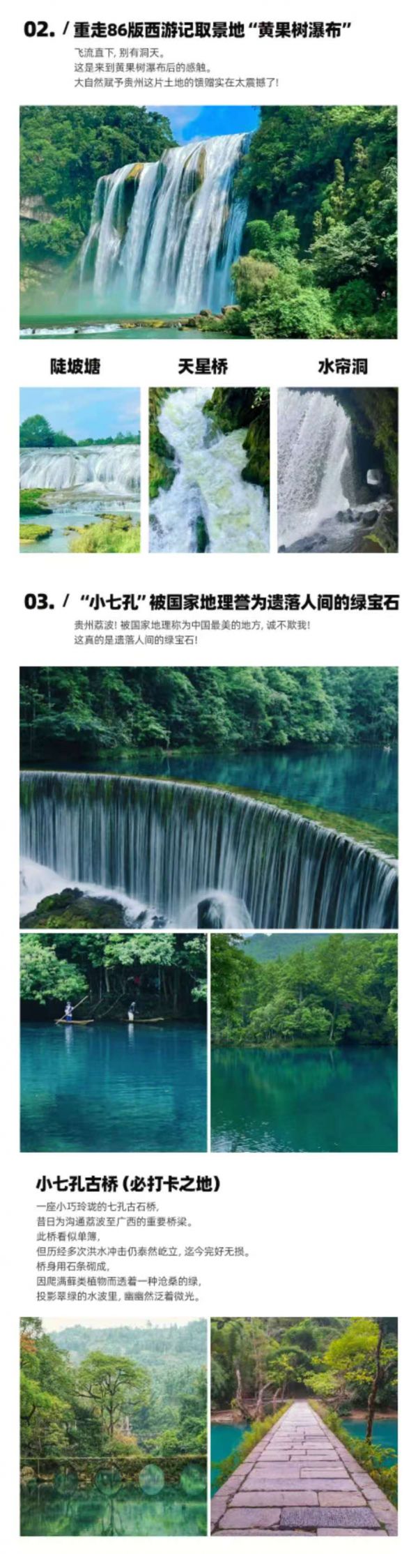 3、門(mén)票:黃果樹(shù)門(mén)票及電瓶車、織金洞門(mén)票及電瓶車(花期百里杜鵑門(mén)票及金坡/普底電瓶車)、烏江寨門(mén)票及電瓶車、灑金谷門(mén)票、西江門(mén)票及電瓶車、小七孔門(mén)票及電瓶車、紅飄帶門(mén)票