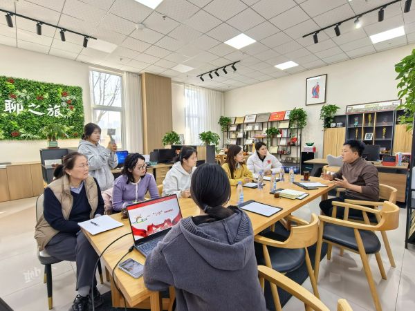 一、會議開場 本次會議由聊城職業(yè)技術(shù)學院學生工作部創(chuàng)新創(chuàng)業(yè)中心主任王冉、副主任吳倩針對文旅學院“挑戰(zhàn)杯”大學生創(chuàng)業(yè)計劃競賽備賽工作開展專項指導。文旅學院黨組織副書記杜輝陪同,學科帶頭人劉寶平及旅游教研室李雁、蔡阿利老師參會,為工作室參賽項目精準把脈、賦能增效,我們作為參賽學生全程參與學習,收獲頗豐。