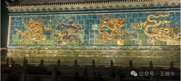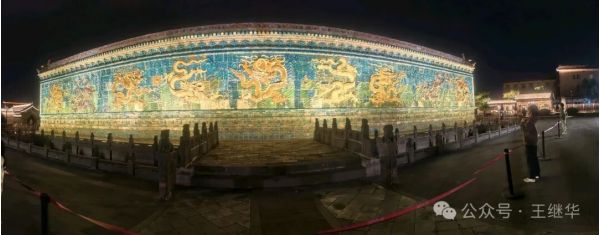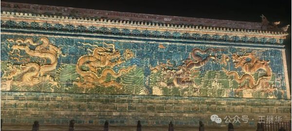 行至九龍壁時,我們特意停下車。白日里或許能看清釉色的細微紋路,但夜晚的九龍壁,在燈光的映襯下更顯靈動。