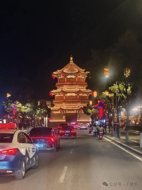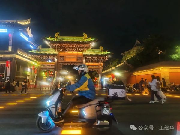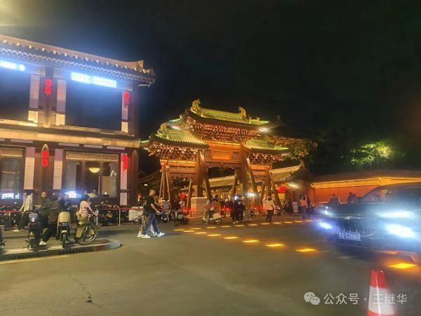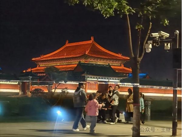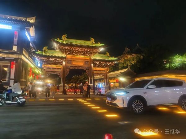 低頭想,若回到千年前的古代,這古城該是另一番景象——沒有如今流光溢彩的LED燈,只有油燈在窗欞間搖曳,光暈微弱卻溫柔,官員的轎子從街上經過,燈籠在前面引路,百姓的屋里透出昏黃的光,母親在燈下縫補,孩童在屋內嬉鬧。那樣的夜晚或許沒有如今熱鬧,卻多了幾分煙火氣的靜謐。