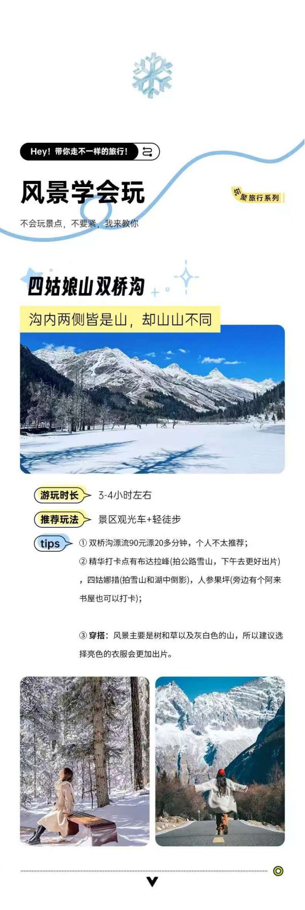 從都江堰出發(fā),前往四姑娘山雙橋溝。雙橋溝內(nèi)風(fēng)景如畫,有雄偉的雪山、幽深的峽谷、清澈的溪流和茂密的森林。乘坐觀光車深入景區(qū),沿途可以欣賞到各種美麗的自然風(fēng)光。您可以在觀景臺下車,拍照留念,也可以徒步探索,感受大自然的寧靜與美麗。游覽完雙橋溝后,返回成都散團(tuán),結(jié)束這段難忘的旅程。在這六天的時(shí)間里,您領(lǐng)略了四川的自然風(fēng)光和人文魅力,帶著滿滿的回憶和收獲,踏上歸程。回到聊城溫暖的家。