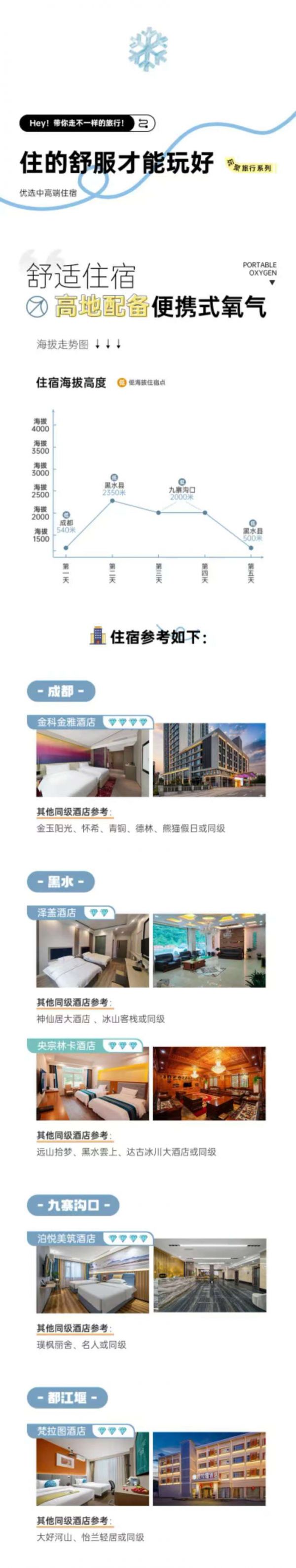 輕奢套餐:成都4鉆+黑水2鉆+九寨4鉆+都江堰3鉆