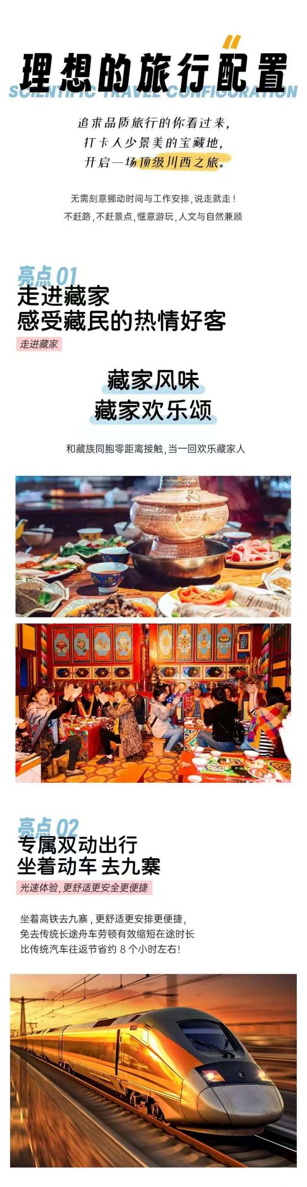 景區(qū)大門集合出發(fā)前往黃龍九寨(川主寺)/松潘高鐵站乘坐動車返回成都結(jié)束此次愉快的旅途!回到聊城溫暖的家。(實際出發(fā)時間/車次與時刻表以實際出票為準(zhǔn))(若遇到動車票緊張需要出更早的車次,就需要提前集合出發(fā)前往動車站(約15點左右出發(fā))