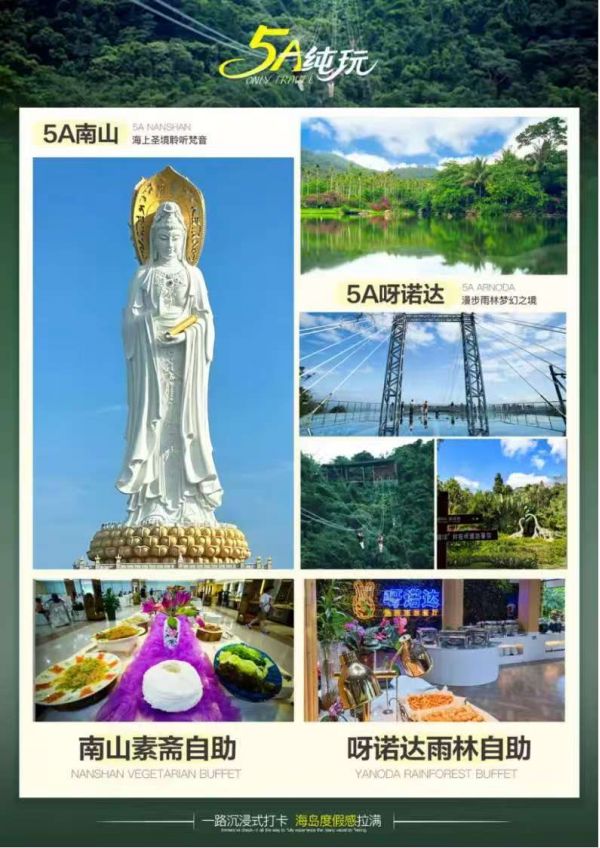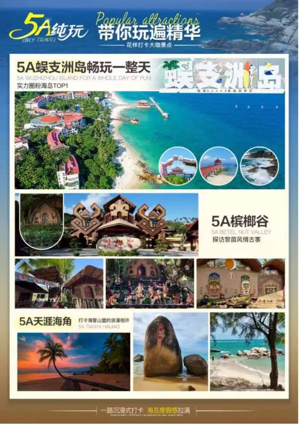 ☆2、精選景點:5A蜈支洲一整天/5A檳榔谷/5A呀諾達/5A南山/5A天涯海角;