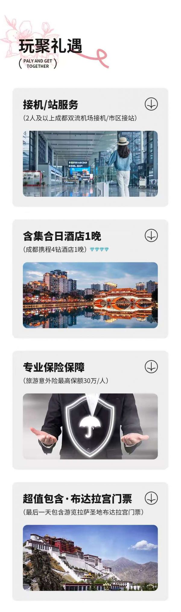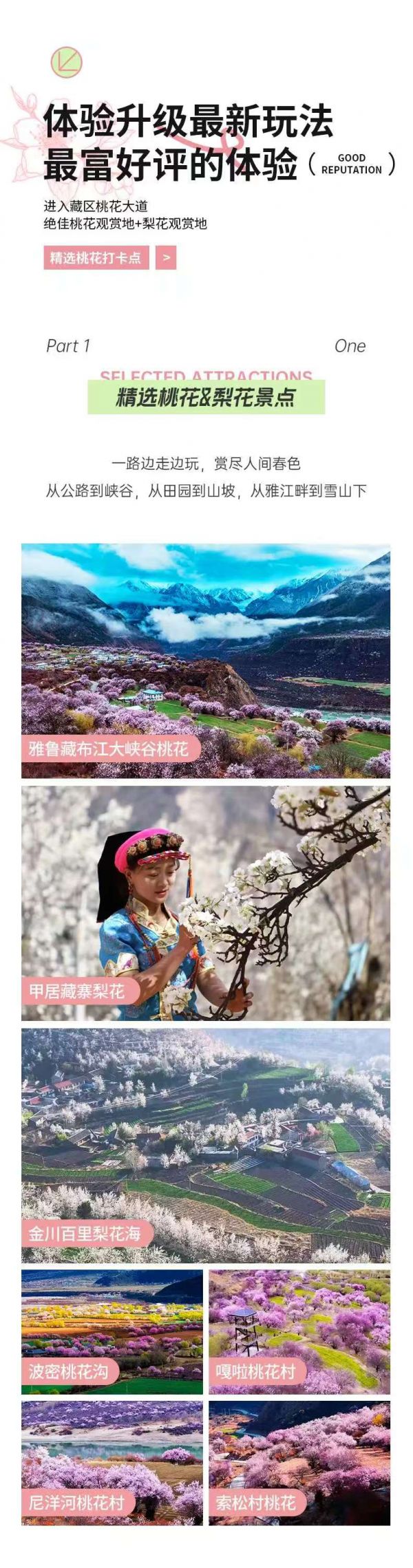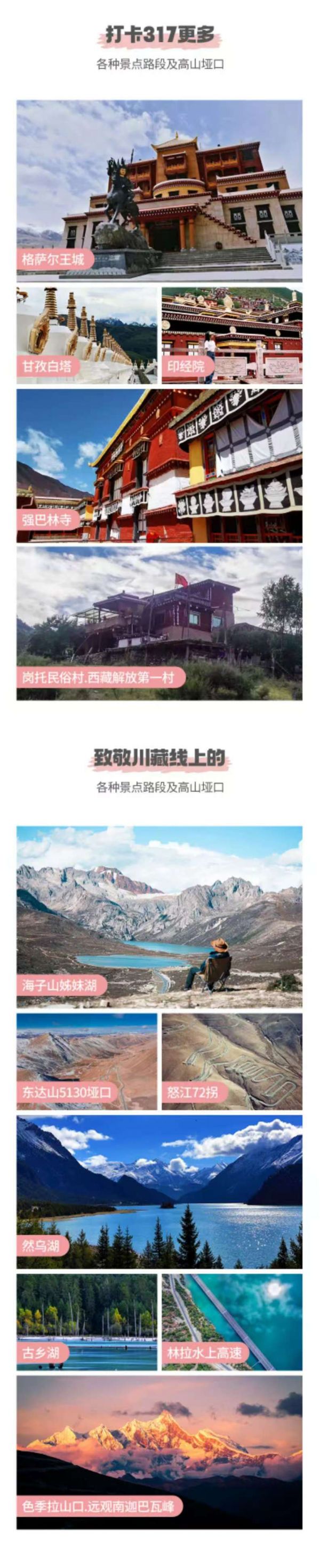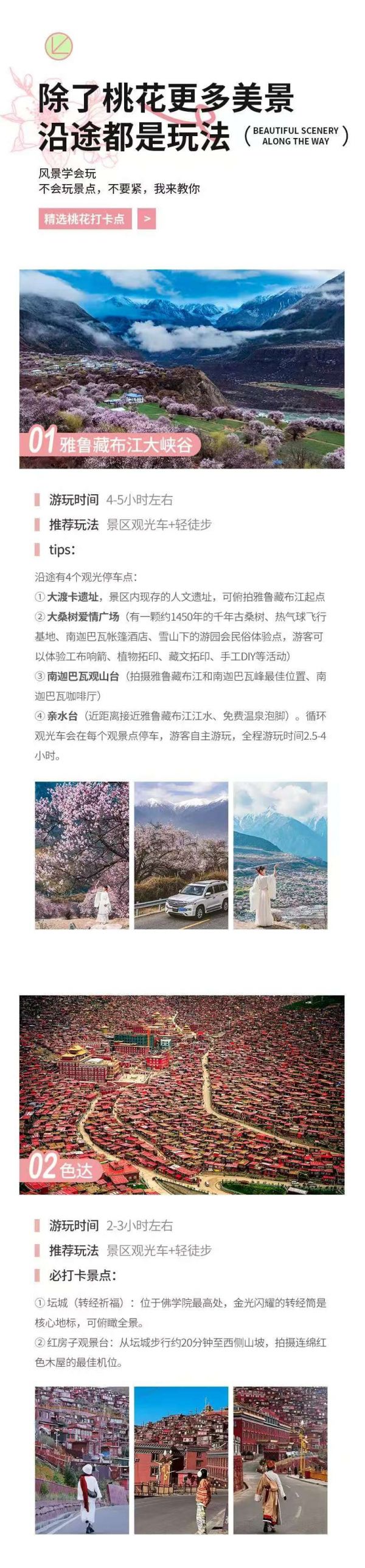 包含甲居藏寨門票、雅魯藏布江大峽谷門票、米堆冰川門票、嘎拉桃花村門票、德格印經(jīng)院門票、巴松措門票、布達拉宮門票。