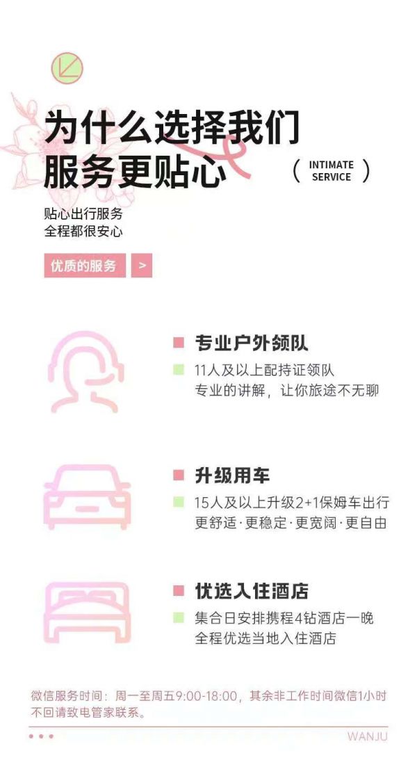 (3)本線路沒有“代購業(yè)務”,請不要在團隊中或者完團后,請求駕駛員代購任何產(chǎn)品,如有需要請自行篩選、購買。