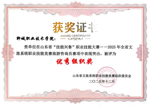 山東省“技能興魯”職業(yè)技能大賽—2025年全省文旅系統(tǒng)職業(yè)技能競賽旅行社咨詢員賽項優(yōu)秀組織獎