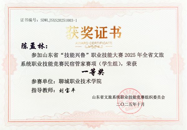 山東省“技能興魯”職業(yè)技能大賽—2025年全省文旅系統(tǒng)職業(yè)技能競賽民宿管家賽項一等獎