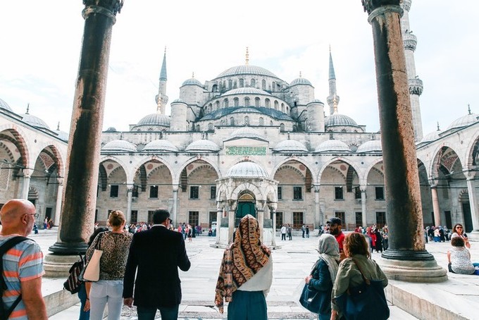 耗時(shí)七年建成的蘇丹艾哈邁德清真寺,又稱(chēng)藍(lán)色清真寺,是伊斯坦布爾的地標(biāo)建筑。墻壁使用了土耳其瓷器名鎮(zhèn)燒制的藍(lán)彩釉貼瓷,以白色為底,刻有豐富的花紋圖案,使得整個(gè)清真寺內(nèi)都充滿了藍(lán)色。清真寺是伊斯坦布爾最大的圓頂建筑,四周建有六座宣禮塔,是全世界唯一擁有六座高塔的清真寺,世界十大奇景之一。