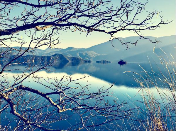 午后沿湖漫步,與摩梭老人閑話家常,時光在此刻慢下來,漫成一首悠然的詩。