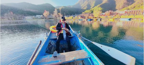 抵達瀘沽湖的剎那,心湖便被撞開一片澄澈——湖水似藍寶石鑲嵌在大地,湖岸山巒錯落如黛,摩梭木楞房散落湖畔,炊煙裊裊,與云影糾纏。