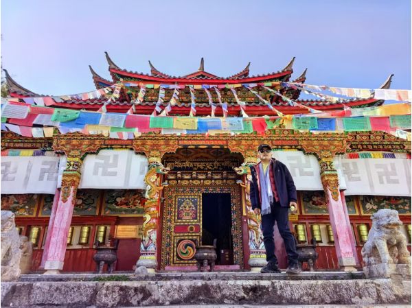 清晨的香格里拉,獨克宗古城的轉(zhuǎn)經(jīng)筒在陽光下轉(zhuǎn)動,劉會長和隊員們慢慢逛著。