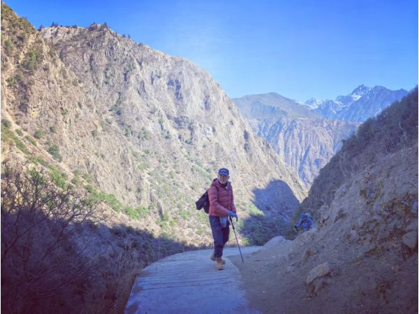 隨后大家在格閣家出發(fā)沿著尼農(nóng)大峽谷徒步進入雨崩。