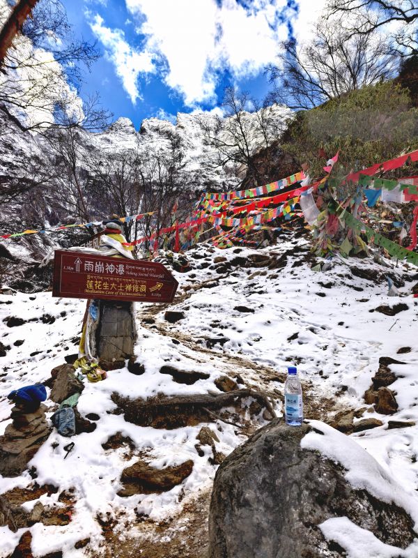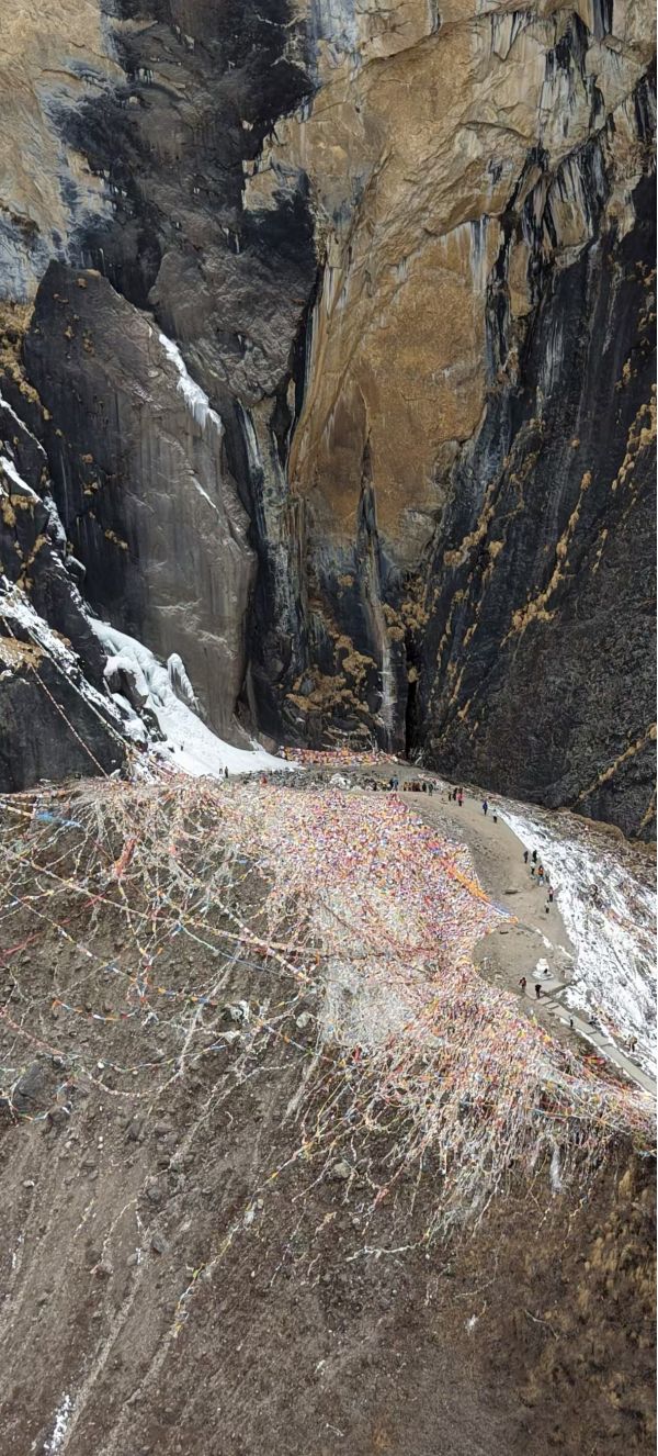 清晨從雨崩村出發(fā),沿著溪流向上,經(jīng)幡在風中飄揚,劉會長給隊員們講著神瀑的傳說,藏地的神秘氛圍拉滿。