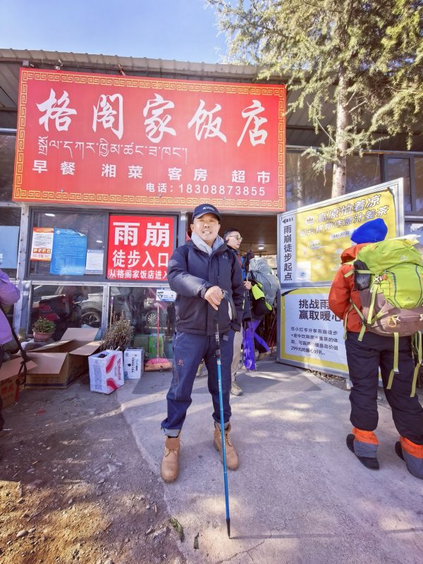 走到笑農(nóng)大本營,大家靠著木欄桿歇腳,看著遠處的雪山,劉會長說:“當年的伐木場,如今成了徒步者的驛站,時光真是奇妙?!?/span>