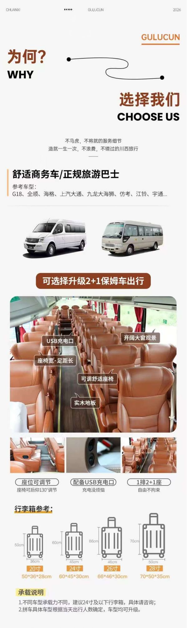 為保證成團(tuán)及質(zhì)量,根據(jù)人數(shù)派不同座位數(shù)用車,保證每人一正座;
