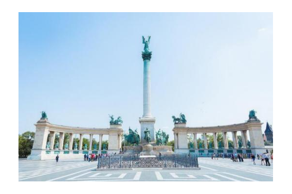 英雄廣場:匈牙利人民為慶祝建國 1000 周年建立了英雄廣場,并在廣場中心豎起一座千年紀(jì)念碑。廣場完工于 1896 年,千年紀(jì)念碑頂端有一位加百利天使,天使手捧伊斯特萬國王加冕時的王冠,象征著匈牙利由此轉(zhuǎn)為基督教國家。紀(jì)念碑的下端是七個騎在馬上的游牧部落首領(lǐng),正是他們在 896 年帶領(lǐng)馬扎爾民族在這里定居,最前面的是阿爾巴德。廣場后方的對稱柱廊建筑上有十四位雕像,他們分別是匈牙利從開國元勛到 1848 年革命期間的,對國家有重要貢獻的國王、領(lǐng)袖及歷史名人。