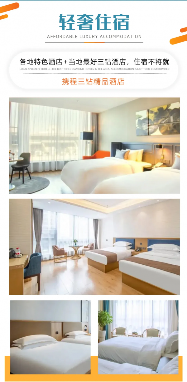 3、 行程中的所列的酒店類型,2星/2鉆=經(jīng)濟型;3星/3鉆=舒適型;4星/4鉆=高檔型;5星/5鉆=豪華型;意為評定或條件到達相應標準的酒店,少部分地區(qū),由于政策等因素,可能存在酒店條件滿足,但未進行星鉆評定的情況;