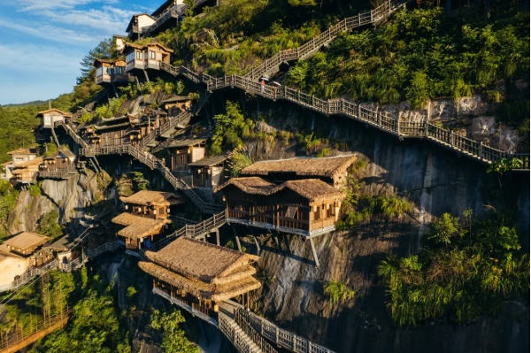 望仙谷位于江西省上饒市廣信區(qū)望仙鄉(xiāng),是一座依托獨特丹霞地貌和峽谷風光,以懸崖民宿、仙俠主題、贛家文化為特色的國家4A級旅游景區(qū)。這里將自然奇觀、人文體驗與沉浸式游憩完美結合,被譽為“懸崖上的仙俠世界”。