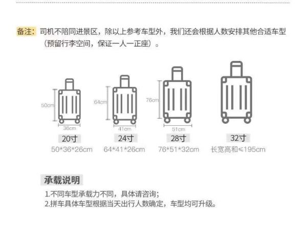 備注:車型承載力有限,攜帶行李為24寸或以下行李箱。