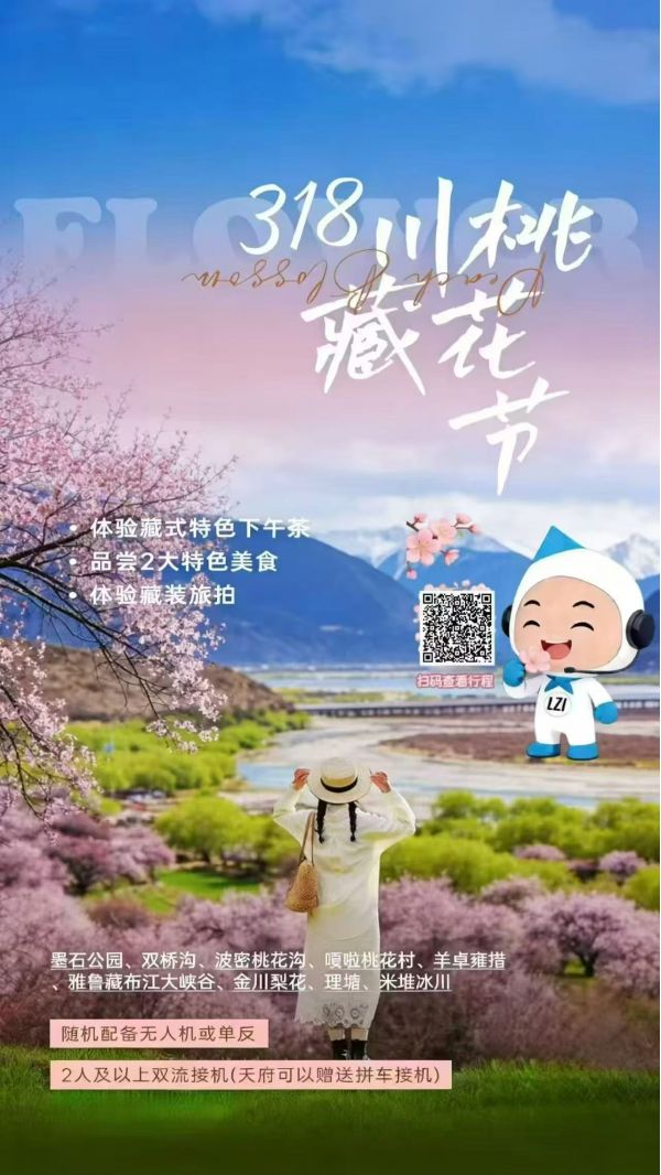 林芝桃花溝 野生桃林綿延30公里,雪山映襯粉色花海