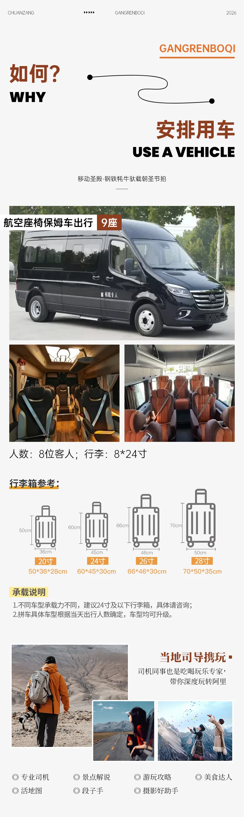 當(dāng)?shù)貙I(yè)司機(jī)兼向?qū)?,?fù)責(zé)行程活動(dòng)中接待服務(wù),不提供景區(qū)講解服務(wù);