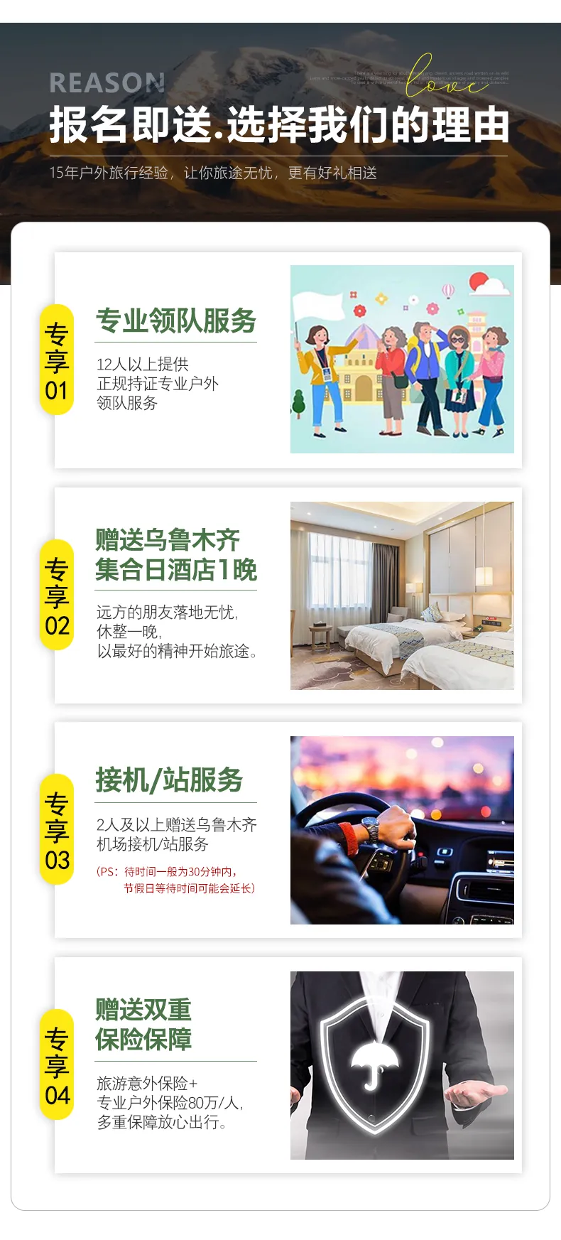 (3)贈(zèng)送烏魯木齊市區(qū)24h免費(fèi)接機(jī)接站服務(wù)