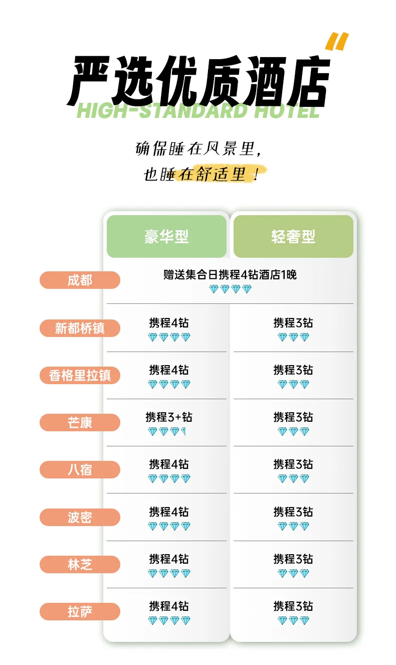 3、贈送成都集合日攜程4鉆酒店1晚;