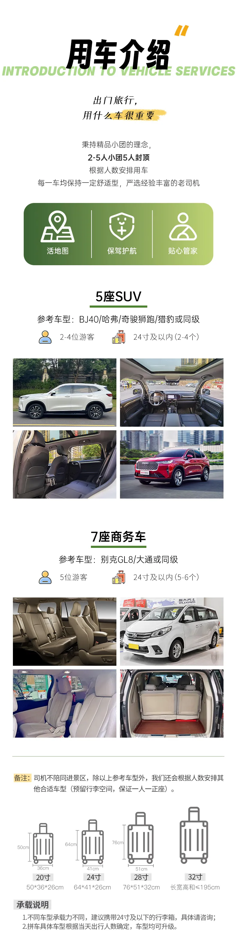 備注:車型承載力有限,攜帶行李為24寸或以下行李箱。