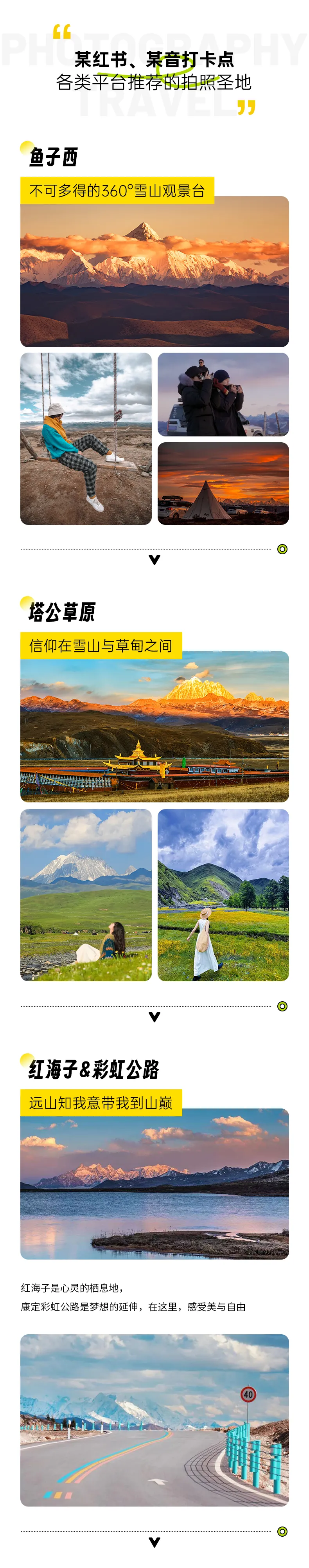 包含四姑娘山雙橋溝門票、墨石公園門票、理塘勒通古鎮(zhèn)套票(包含博物館+講解)、亞丁景區(qū)門票、海螺溝門票