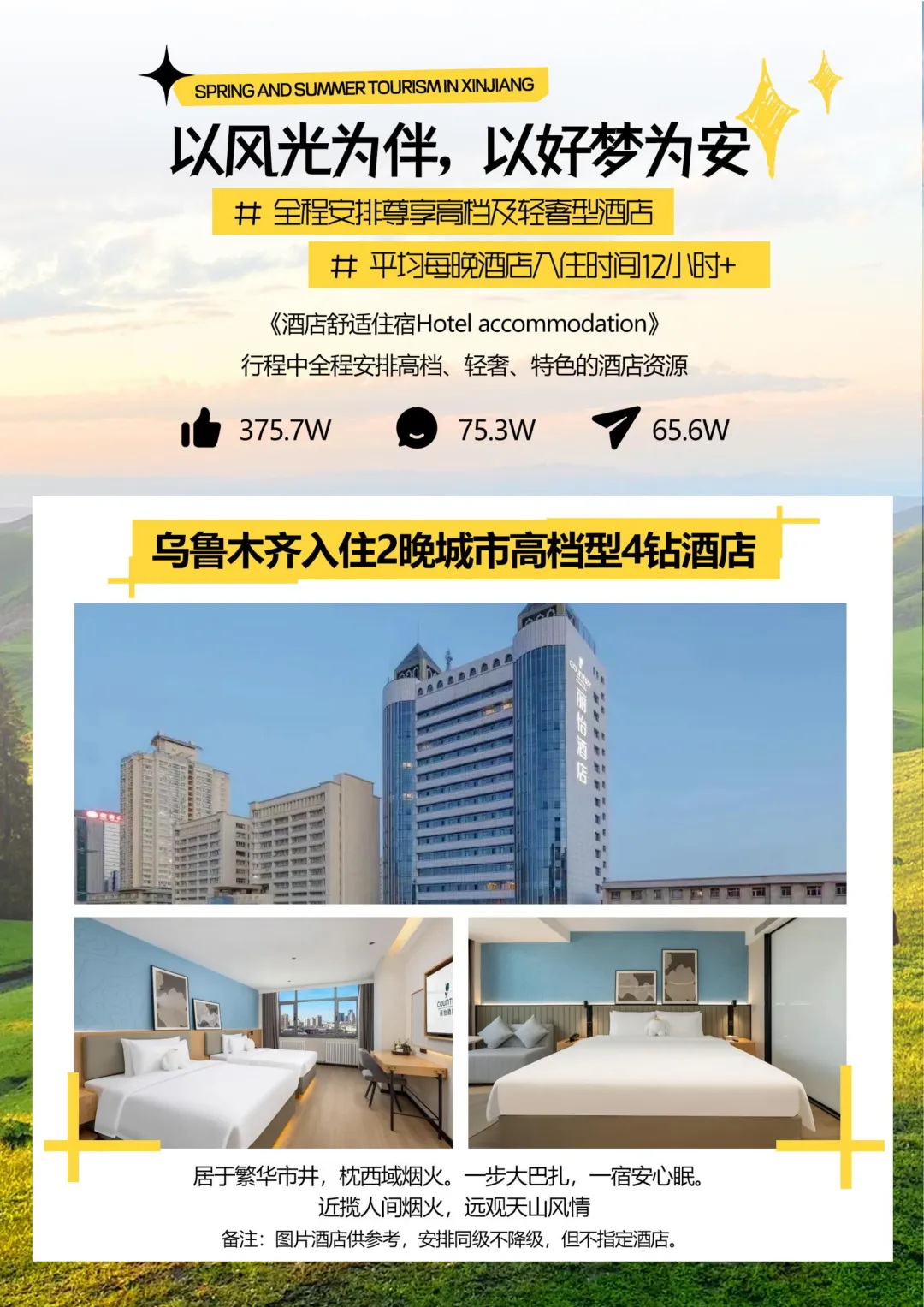 特別提示2:新疆酒店標(biāo)準(zhǔn)低于內(nèi)地,山區(qū)酒店無空調(diào);旺季若酒店被征用或爆滿,將安排同檔次及以上酒店。