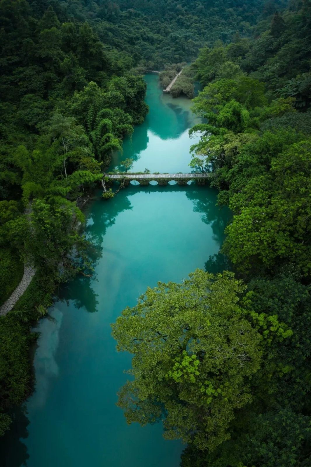 這里把山、水、林、瀑組合在一條動線里:入口是清代的小七孔古橋,往內(nèi)依次可以看到臥龍?zhí)?、拉雅瀑布以及多級跌水瀑布群,水體顏色偏藍綠,辨識度很高;中段還有“水上森林”等典型景觀,整體游覽邏輯清晰,不需要反復(fù)折返。