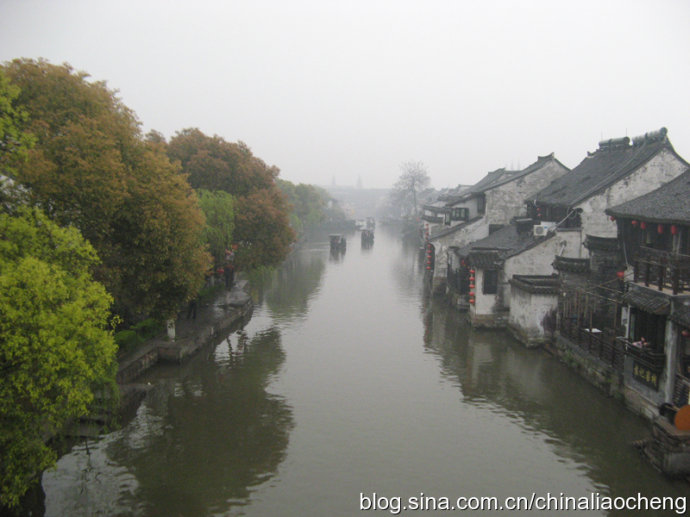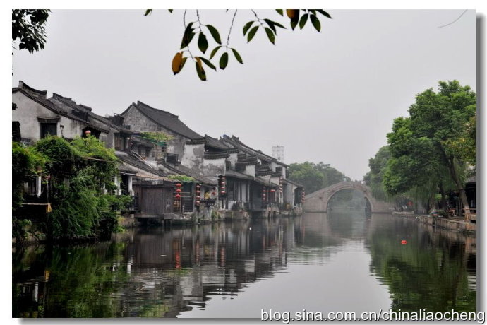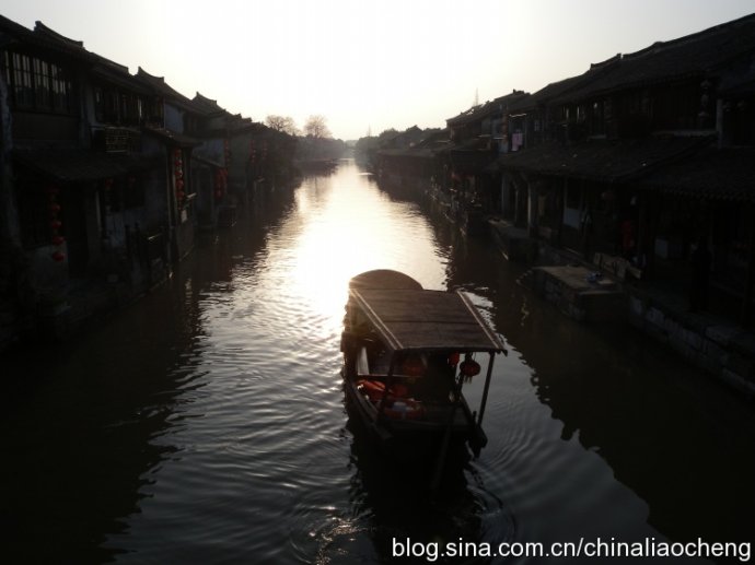 站在橋上遠(yuǎn)眺,西塘的水、路、棚廊以及模糊的黛瓦粉墻在斜陽(yáng)的暈染下,如淡彩的宣紙畫(huà);古鎮(zhèn)彎彎曲曲的弄堂,平平仄仄的石板,瘦瘦清清的小河,高高低低的石橋,如泛黃的照片在記憶里層層清晰。這樣遠(yuǎn)遠(yuǎn)近近的望著,目光沾染了水的痕跡,醉成濕漉漉的癡情。夕陽(yáng)斜下,橋下嫣紅的水面隨櫓的搖晃灑下一串串晶瑩剔透般的珍珠,小船兒蕩蕩悠悠地劃著,橋的影子在細(xì)細(xì)碎碎的水聲中被一波一波的漣漪輕柔地化開(kāi),亦真亦幻而又忽明忽暗,仿佛歲月的印痕在自然的畫(huà)面中流動(dòng),樹(shù)影、船影、橋影,晃動(dòng)著,漸漸隱去。