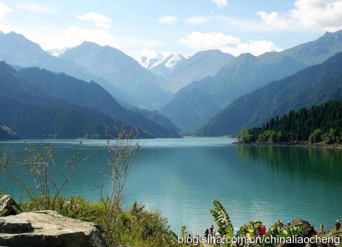 草甸如菌,山花鮮艷。風(fēng)靜波平時(shí)湖水似一池翡翠,隨著天氣的變化又更換著不同的色調(diào),自晨至夜換變著風(fēng)采。每當(dāng)云霧繚繞,雪峰、春山若隱若現(xiàn),恍若隔世。七八月份雨后清晨登上