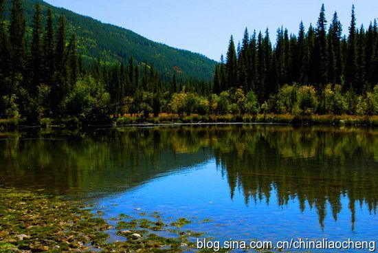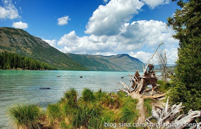 濕地與河灣小心灘共存,地形平坦開闊,各種草類與林木共生,一派生機(jī)勃勃的景象。喀納斯湖上端,有