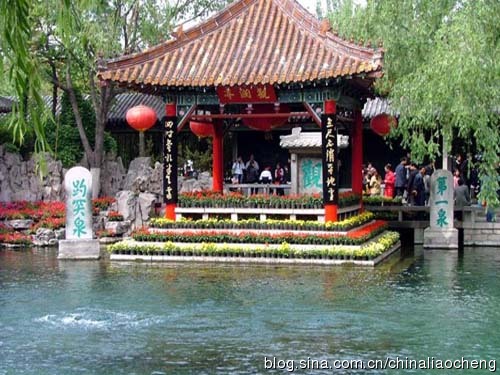 趵突泉景區(qū)在我們公園內(nèi)西側(cè),是全園構(gòu)圖中心,由亭、堂、廊、榭組成了一個封閉空間,高低錯落的建筑像眾星捧月一樣,簇擁著噴突騰涌的趵突泉,人們可以從不同的角度欣賞泉景,被譽為濼水之源,在史書上第一次出現(xiàn)是<<春秋>>上關(guān)于魯桓公和濟襄公談判兩國邊界一事的記載。魯桓公十七年(公元前695年)。齊國和魯國因邊界爭執(zhí)發(fā)生戰(zhàn)爭,次年春,魯桓公到齊國談判邊界問題,會齊侯(齊襄公)于濼。濼,濼水的源頭,即趵突泉。所以趵突泉為人所知已經(jīng)有二千五、六百年的歷史了。當然那時濼水之源,名字并不叫趵突泉,北魏時,因泉上建有娥姜(英)廟,谷稱娥姜(英)水,直到唐宋八大家之一的北宋文學(xué)家曾鞏始稱為趵突泉,并流傳至今。不過,宋朝.金代曾有人稱叫“溫泉”、“檻泉”、“爆流泉”、“瀑流泉”等等,但都不如趵突泉這個名字精當傳神。