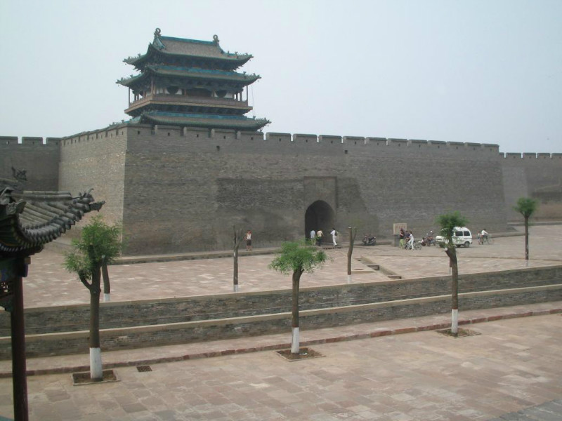 即平遙縣城墻。明洪武三年(1370年)建,周長6.4公里,是山西現(xiàn)存歷史較早、規(guī)模最大的一座城城墻。明、清兩代都有補(bǔ)修,但基本上還是明初的形制和構(gòu)造。城為方形,墻高12米左右,外表全部磚砌,墻上筑的垛口,墻外有護(hù)城河,深廣各4米。城周辟門六道,東西各二,南北各一。東西詐外又筑以甕城,以利防守。有3000個(gè)垛口、72座敵樓,據(jù)說象征孔子三千弟子及七十二圣人。。城墻歷經(jīng)了600余年的風(fēng)雨滄桑,至今仍雄風(fēng)猶存。
