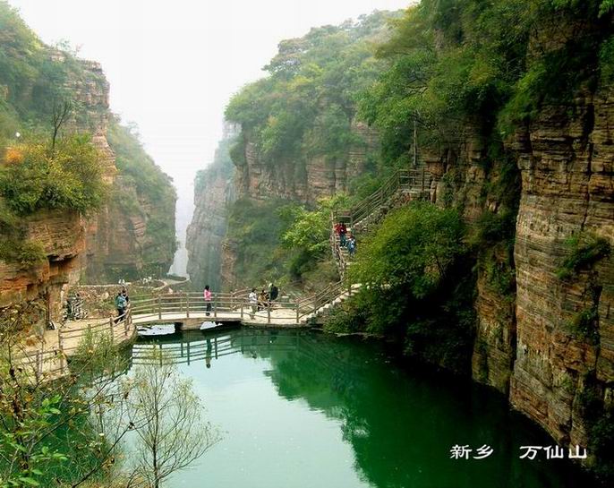 萬(wàn)仙山景區(qū)位于河南省輝縣市西北部太行山腹地,距鄭州市150公里,距新鄉(xiāng)市70公里,總面積64平方公里,最高海拔1672米,這里群峰競(jìng)秀、層巒疊嶂、溝壑縱橫、飛瀑流泉,既有雄強(qiáng)而蒼茫的石壁景觀、又有妙曼而秀雅的山鄉(xiāng)風(fēng)韻,集雄、壯、奇、幽、峻為一體。景區(qū)由中華影視村--郭亮、清幽山鄉(xiāng)--南坪、人間仙境--羅姐寨、佛教圣地--三湖四個(gè)分景區(qū)組成。1990年確定為“省級(jí)風(fēng)景名勝區(qū)”,2003年評(píng)審為省級(jí)地質(zhì)公園。2005年被評(píng)審為國(guó)家級(jí)地質(zhì)公園,國(guó)家AAAA級(jí)旅游景區(qū)。是著名的旅游、避暑、休閑勝地和影視、寫(xiě)生基地。