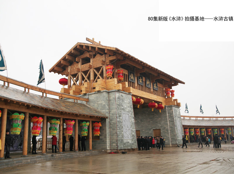 水滸古鎮(zhèn)是水滸影視基地的龍頭項目,位于東平湖東岸,東起255省道,西至東平湖湖岸線,南起大清河,北至老湖鎮(zhèn)朱橋村,總規(guī)劃面積約5平方公里,計劃總投資12億元,由東平縣水滸旅游開發(fā)有限公司投資興建。項目劃分為入口區(qū)、引景區(qū)、水滸影視城、水滸風(fēng)情展示區(qū)、中心碼頭服務(wù)區(qū)、景觀地產(chǎn)區(qū)六大功能區(qū) 。主要建設(shè)引景大道、水滸廣場、水滸影視城、替天行道坊、東京汴梁御道、聚星樓、伏魔殿等景點。