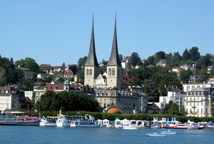 有兩座美麗尖塔的豪夫教堂(Hofkirche),位于盧塞恩湖的北面,是盧塞恩最重要的教堂。公元735年開始建造,是羅馬式建筑,到14世紀改建為哥特式,17世紀的一場大火中受到了嚴重破壞,隨后又改建為文藝復興式。教堂內(nèi)部莊嚴肅穆,禮拜席上有生動細膩的雕刻圖案。教堂的管風琴,1640年制造,共有4950根風琴管,至今仍在盧塞恩的夏季音樂節(jié)上使用。