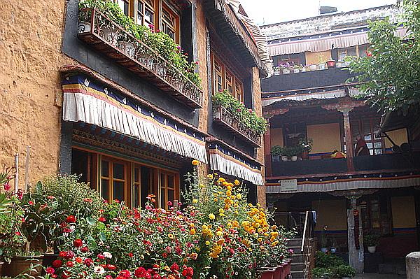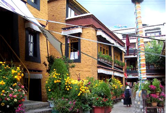 阿尼倉(cāng)姑寺的院子里有一個(gè)倉(cāng)姑甜茶館,版權(quán)所有山東聊城聊之旅國(guó)際旅行社有限公司,轉(zhuǎn)載必究!是院子里一個(gè)露天大棚,用柵欄與寺院隔開(kāi)。每天 ,在八廓街轉(zhuǎn)經(jīng)、燒香,累了的人們,來(lái)到倉(cāng)姑寺轉(zhuǎn)經(jīng)后,從側(cè)門(mén)進(jìn)入院子里的甜茶館休息聊天,那愜意真令人羨慕。