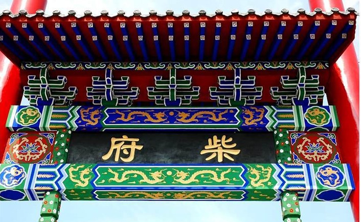 其三,柴府建筑即有極富裝飾性的房頂,又配以豐富多彩的色彩。主要建筑屋頂裝飾有十字形、丁字形兩種,其結構以“懸山頂”為主。兩邊的建筑結構則為“硬山頂”。建筑物上涂漆及彩畫多用紅、綠、黃、藍色,即使在冬季也有生機之感。