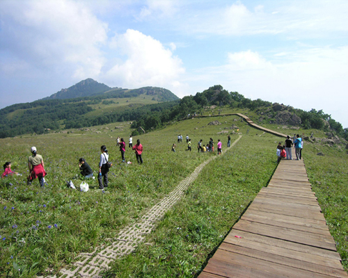 每年五月份,山下春意融融,鳥語花香,山上仍有長達100多米的冰川,這種奇特的“冰川杜鵑”景觀,令許多旅客贊嘆不已。形成“一山有四季,上下不同天”,白草畔是河北省太行山腹地保留的一處唯一以安山巖石林和森林相匹配的生態(tài)系統(tǒng)。安山巖呈紅色,發(fā)育了許多奇特的巖柱景觀,有的像人有的像物,造型奇物,安山巖地貌上發(fā)育了大面積原始森林,石林加森林,號稱“二林競秀”。