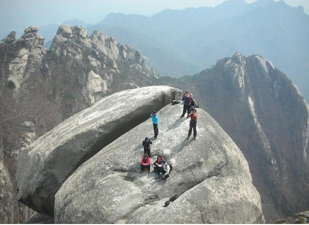 北漢山位于韓國(guó)首都首爾北面,其名字意為北面最大的山,也被稱為三角山、負(fù)兒岳。巨大花崗巖形成陡峭曲線是北漢山的最大特點(diǎn),高聳的巖峰和巖峰間流淌著的清澈溪谷斷然可見。山峰千姿百態(tài),其中有836.5m的白云峰,巖峰和樹木之間生存有1,300余種動(dòng)植物。巖峰中的第一高峰是仁壽峰的奇巖,世界聞名的懸崖仁壽峰達(dá)200m以上,光是路線就有100多個(gè)。站在白云臺(tái)頂上,透過(guò)云層,漢城和漢江一收眼底。