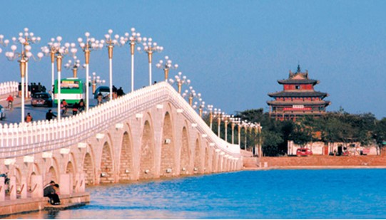 東昌大橋(西關(guān)橋)、北關(guān)橋、南關(guān)橋、東關(guān)橋,通達四極,拱衛(wèi)古城,宛如玉龍出海,又似長虹臥波,氣勢恢弘,美麗壯觀。