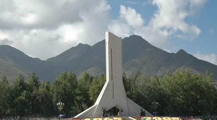 達(dá)扎路恭紀(jì)功碑位于西藏展覽館前公路南側(cè)。赤松德贊普在位時(shí)(755-797)所立。石碑立于高l.92米,面積22.25平方米的正方形基上。臺(tái)基正中為三級(jí)階梯形碑座,高1.32米。碑身通高巴米,呈方柱形,下寬上收。碑身北、東、南三面均刻有藏文楷書,北側(cè)有字68列,東側(cè)16列,南側(cè)74列。碑身完好,碑文大部分尚可辨認(rèn)。