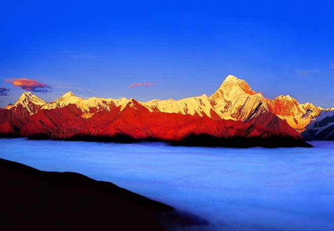 貢嘎山海拔7556米,是四川省最高的山峰,被稱為“蜀山之王”。山區(qū)高峰林立,冰堅(jiān)雪深,險(xiǎn)阻重重,是中國海洋性山地冰川十分發(fā)育的高山之一,在登山運(yùn)動(dòng)和科學(xué)研究中占有十分重要的地位,是一座極受登山愛好者青睞的名山。