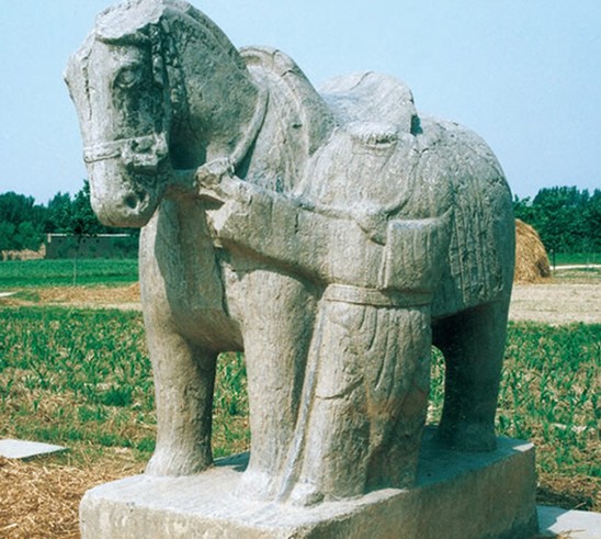 韓氏墓地石刻群 古代石刻群。位于莘縣董杜莊鄉(xiāng)梁丕營村東北。系唐末魏博節(jié)度使韓允中及其父韓國昌墓葬神道石刻群。墓葬坐北朝南,地表封土已平。石刻存有韓允中墓碑、韓國昌神道碑、墓表、豕、羊、馬、武士俑。韓允中墓碑和韓國昌神道碑形制大小基本相司。碑身與碑額為整石雕出,通高6.8米、寬2.13米、厚0.77米。額上浮雕6條龍,曲折盤繞,層次分明,龍首飾在碑首側(cè),碑首正中留有圭字形額。碑文多有殘缺,可辯者有2500余字,書體工整秀勁,波折險峻,有褚體韻致。墓表,位于神道碑的最南端,八棱形,通高3.49米,表首圓形,飾仰蓮,座方形。八棱柱體上刻有宋紹圣二年的簡短文字,記敘了宋代補添神道石刻的經(jīng)過。石豕,首殘,殘高1.12米。肌肉雄健,四足有力,蹲坐于方形基座上,隱露出勇猛不可侵犯的樣子。石羊,高0.92米,俯臥在長方形基座上,雙角大而彎曲,安詳?shù)刈⒁暻胺?。石馬,首尾長2.36米,高1.60米,著鞍轡,雕琢渾樸。馬左前雕出一胡服束帶牽馬石俑,頭部已殘,高1.40米,形象威嚴,版權(quán)所有山東聊城聊之旅國際旅行社有限公司,轉(zhuǎn)載必究!神態(tài)逼真。武士俑,頭戴冠,雙手持劍站立在方形臺基上,高2.73米,短頸,雙目圓睜,威武莊嚴。韓氏先世為河南汝南人,世為魏將,國昌官至貝州刺史,唐大中六年(852)卒。允中官至魏博節(jié)度使,乾符元年(874)卒。父子俱為顯官,故神道石刻之高大雄偉有異于常。1992年6月被山東省政府列為省級重點文物保護單位。
