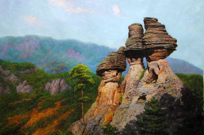 它是約100萬(wàn)年前(即新生代第3期),從長(zhǎng)白山( 朝鮮人稱:白頭山) 的火山脈噴出的熔巖冷卻后凝固而成的流紋巖、玄武巖等火成巖,經(jīng)受了長(zhǎng)時(shí)期的風(fēng)蝕雨削,形成一座座的山峰,形狀奇異。面積約為250平方公里。