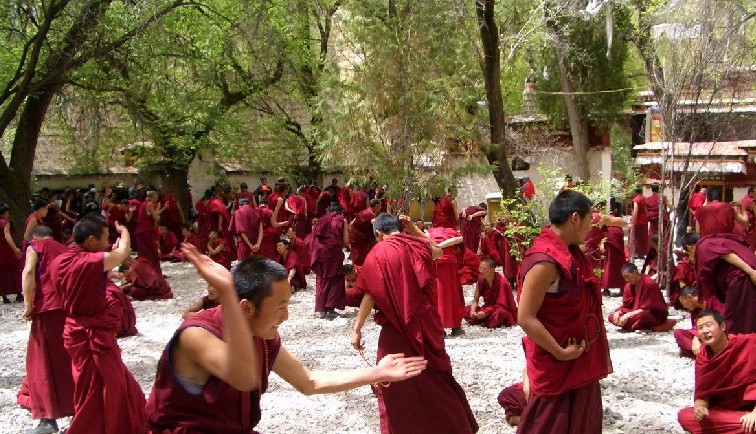 辯經(jīng),是一種佛學(xué)知識的討論,也可以說是喇嘛們的一種學(xué)習(xí)方式。色拉寺的僧人們每天有一次辨經(jīng)活動。這是一種富于挑戰(zhàn)性的辯論,雙方唇槍舌劍,言詞激烈,辯論者往往借助于各種手勢來增強(qiáng)辯論的力度,他們或擊掌催促對方盡快回答問題,或拉動佛珠表示借助佛的力量來戰(zhàn)勝對方。辯論場上的熱烈氣氛使游人也深受感染。